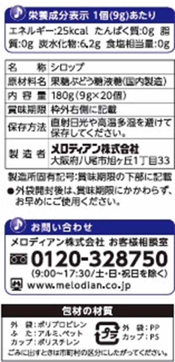 [20袋]メロディアン メロディアンシロップ 20個入 | さわやかな果糖の甘さ!
