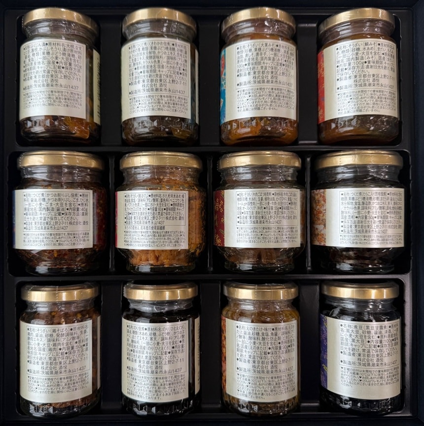 ごはんのお供に最適な鮭茶漬や牛肉ごぼうをはじめ、酒悦伝統の福神漬・のり佃煮もとり揃えたバラエティ感とボリューム感を兼ね備えた瓶詰12本セットです。