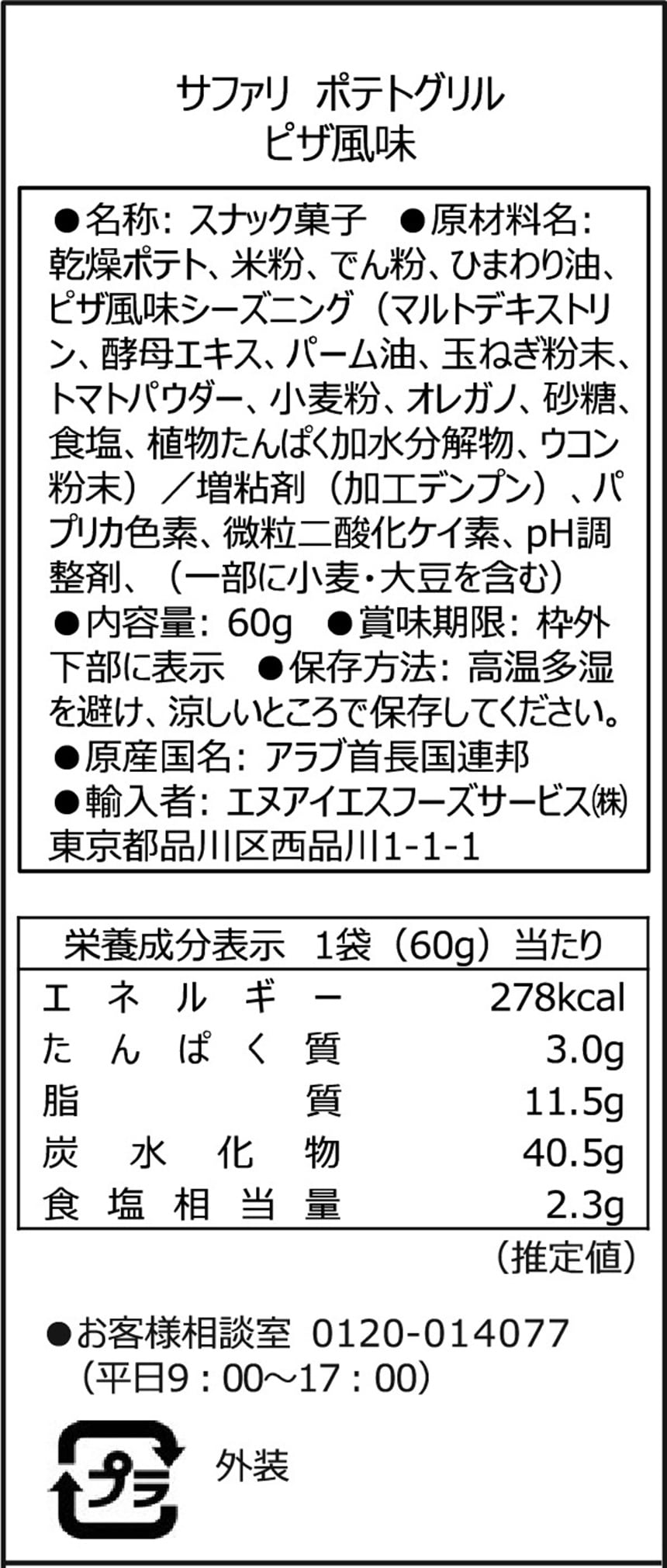 [16袋]エヌアイエスフーズサービス サファリ ポテトグリル ピザ風味 60g | ドバイ生まれのポテトスナック。