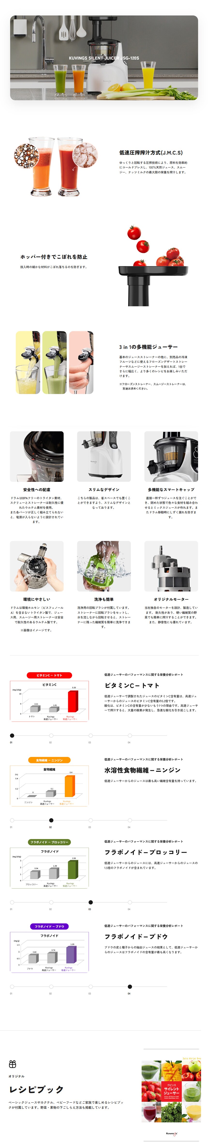 ※お届けの商品は【[ホワイト] クビンス(Kuvings)/サイレントジューサー (レシピブック付)/JSG-120S-W】となります。