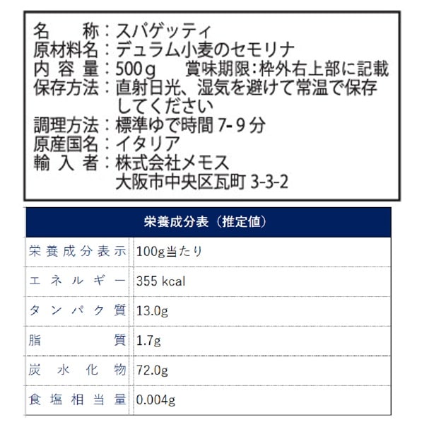 [24袋]メモス ディヴェッラ #8 スパゲッティ・リストランテ 1.75mm 500g | 1.75mm。イタリアで一番食されている太さのスパゲッティです
