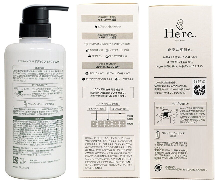 - Here.(ヒヤドット)ママボディケアミルク 500ml
