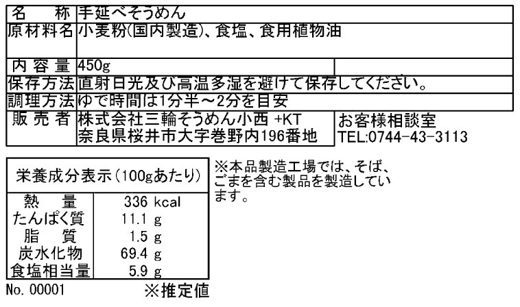 [5箱]三輪そうめん小西 RNK-15 三輪素麺 誉 450g | 強いコシとなめらかな喉ごし、一本一本丁寧に作られる素麺は伝統の手延べ製法です。