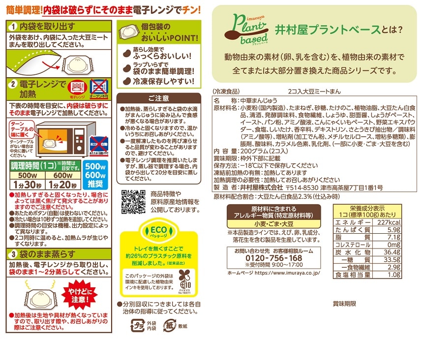 外袋をあけ、内袋に入った大豆ミートまんを取り出してください。