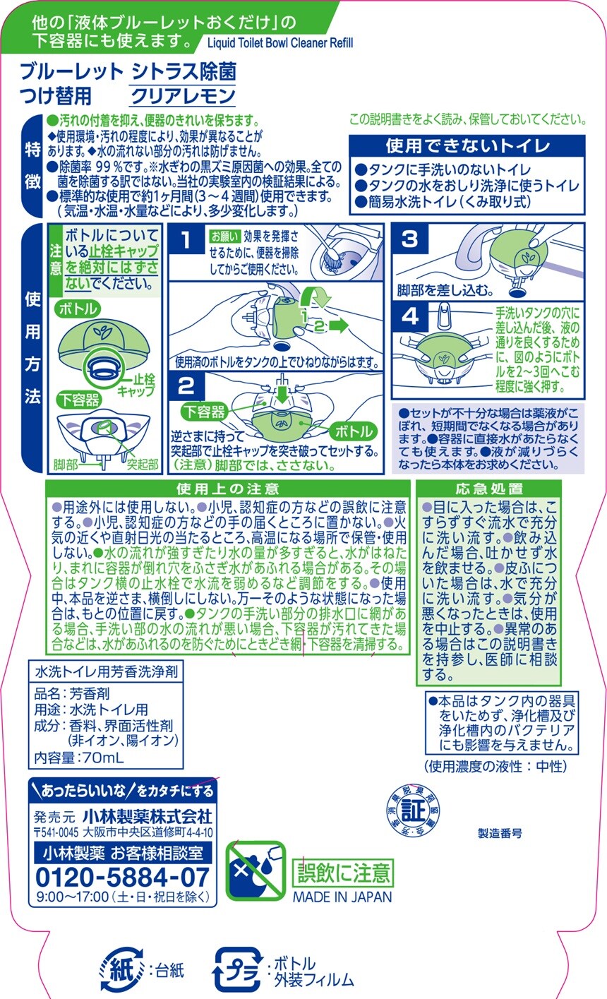 - ・液体ブルーレット除菌 シトラス つけ替用 クリアレモン 70ml×18個