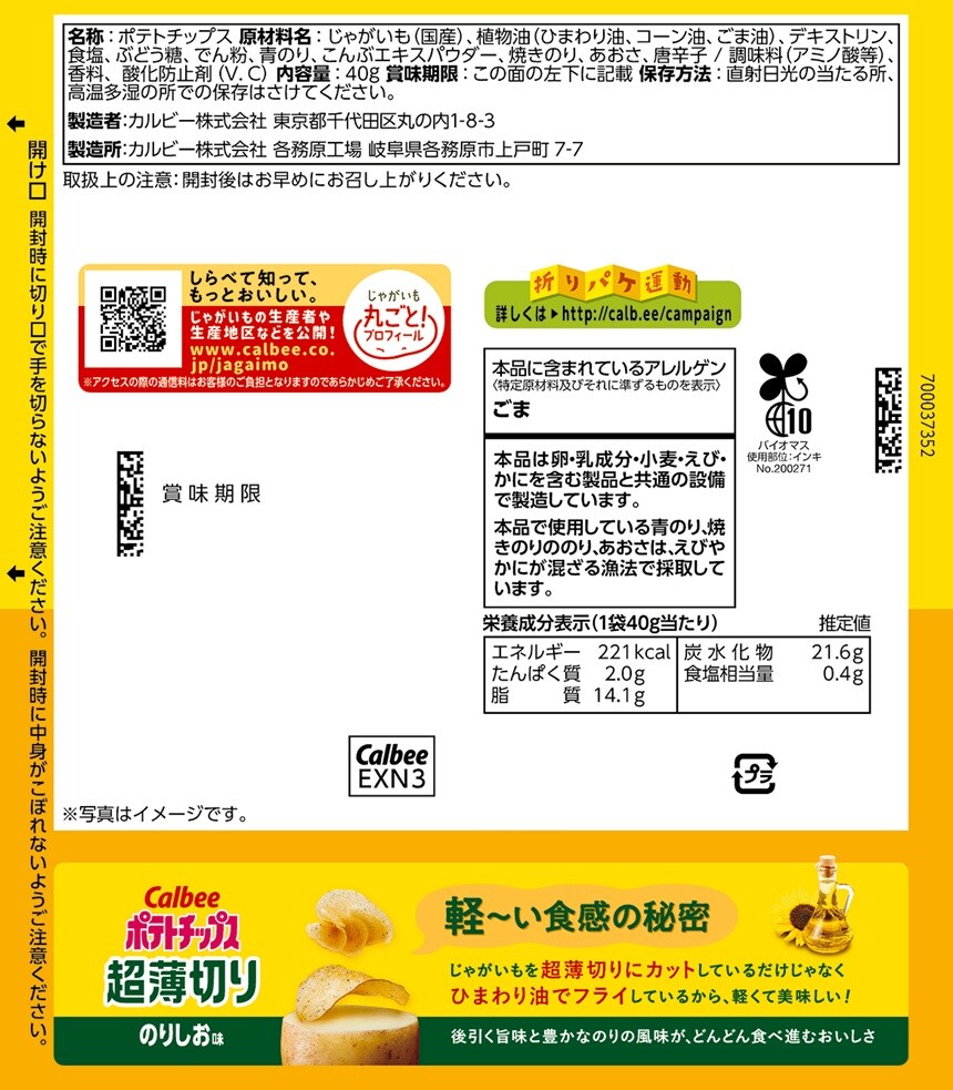 - カルビー ポテトチップス 超薄切りのりしお味 40g