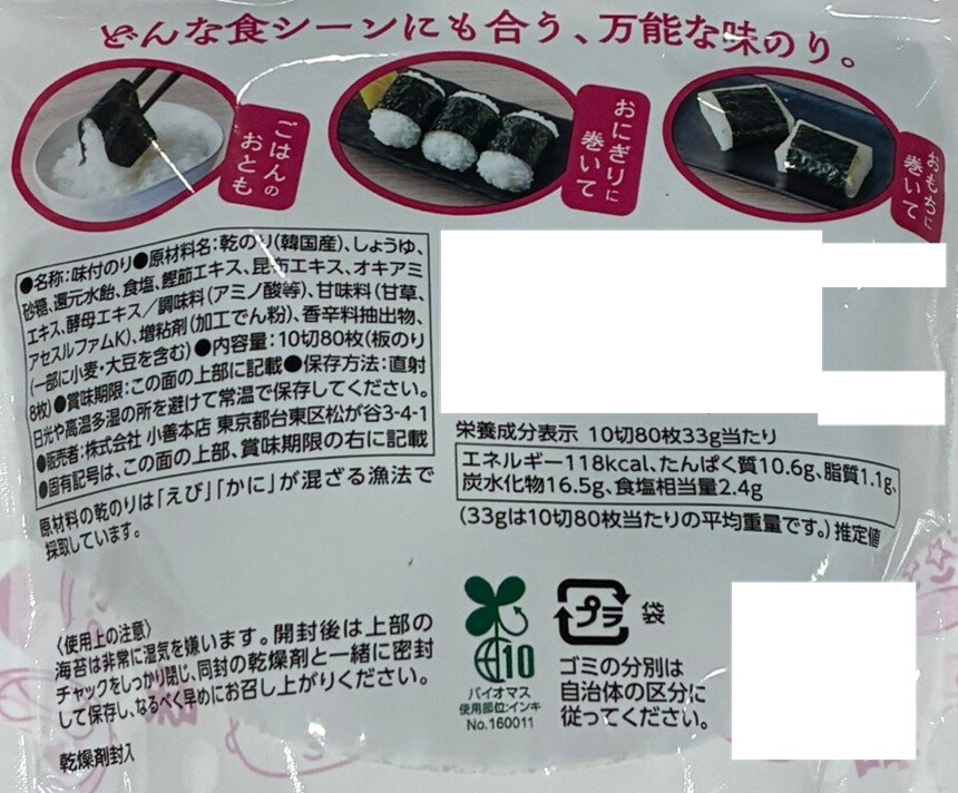 [5個]小善本店 やみつき味だれ海苔 10切 80枚入 | 甘めの醤油と鰹節、昆布だしの風味が効いた調味だれが、海苔本来の旨みを引き立てます