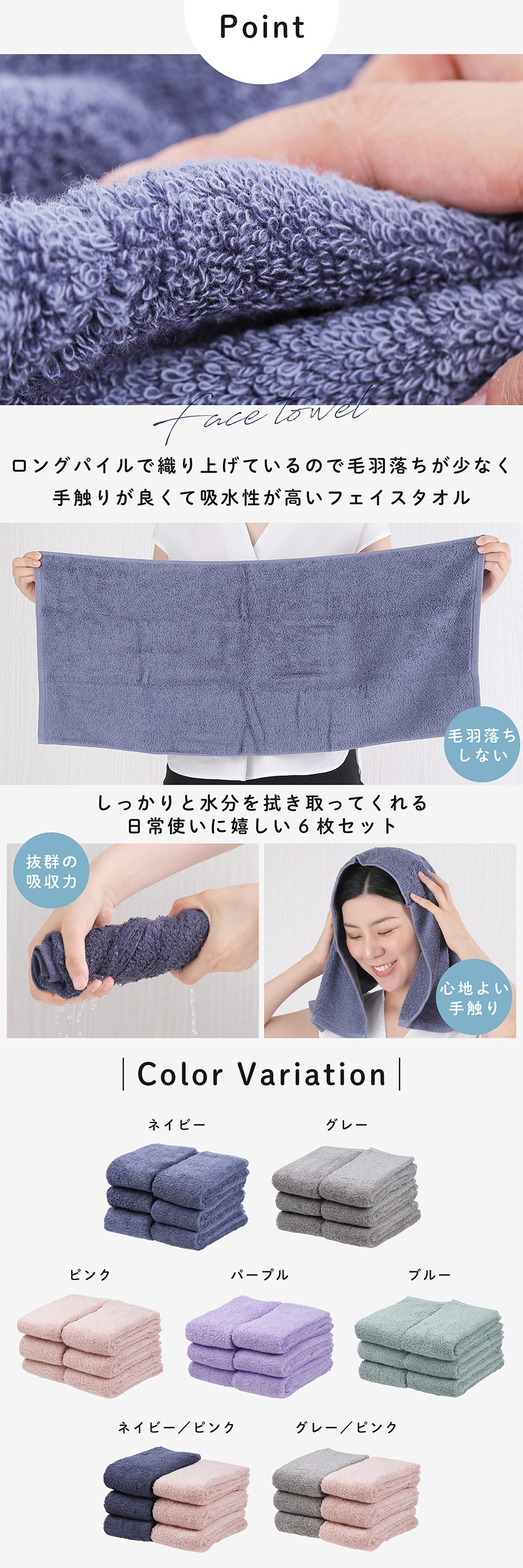 [計6枚]ライフブリッジ <シンプル百科>吸水性が良くて毛羽落ちが少ないフェイスタオル グレー 6枚セット×1個 | 毛羽落ちが少なく手触りが良くて吸水性が高いフェイスタオル