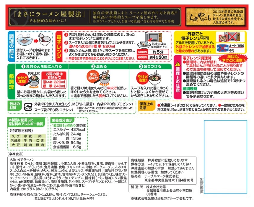 - たかはし監修 まるぐ 焼きあご塩ラーメン 255g / らぁ麺やまぐち監修 まるぐ 鶏コク醤油ラーメン 281g / 燈郎監修 まるぐ 濃厚豚骨醤油ラーメン 334g