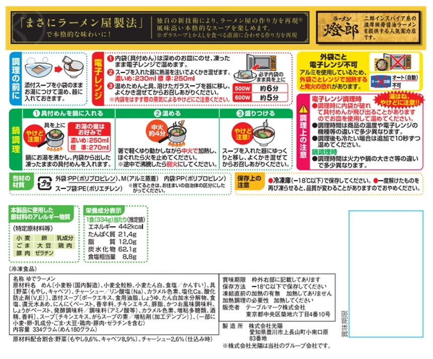 名店「ラーメン燈郎」監修のこだわりの具材をトッピングしました。