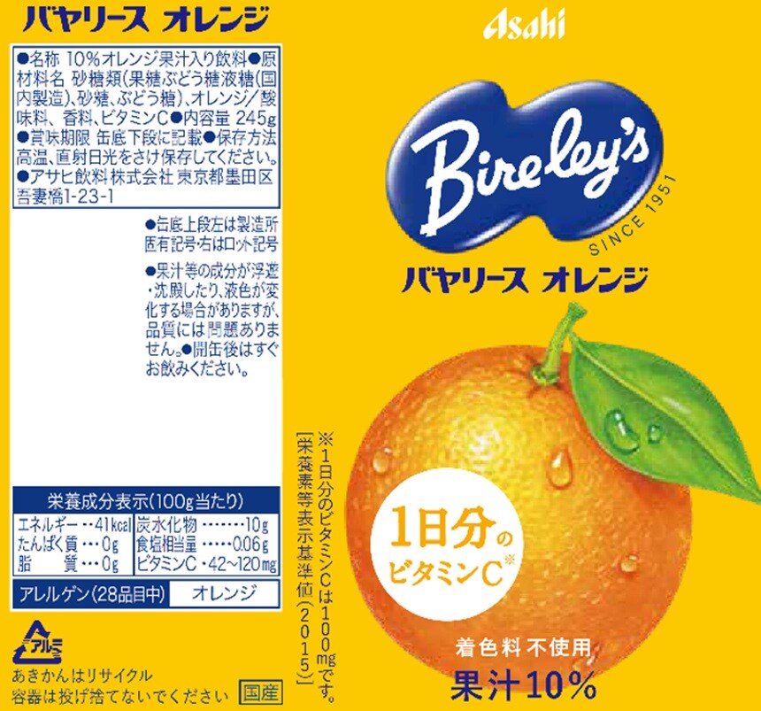 [30本]アサヒ飲料 バヤリースオレンジ缶 245g | “手軽に果実のおいしさを楽しめ、気持ちをさっぱりさせられるオレンジ飲料。”