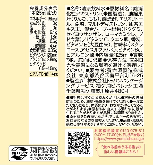 ・食べる前のうるる酢ビューティー 桃味 125ml×18本 - 賞味期限