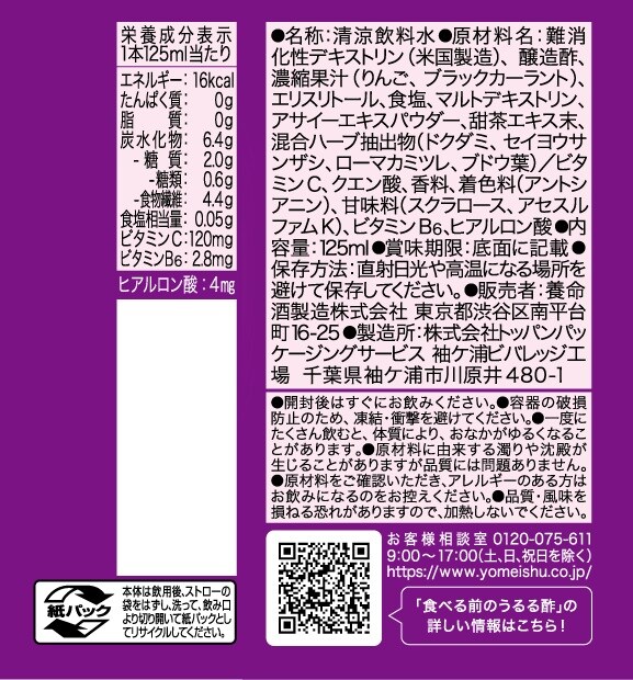 - 食べる前のうるる酢ビューティー アサイー×カシス味 125ml