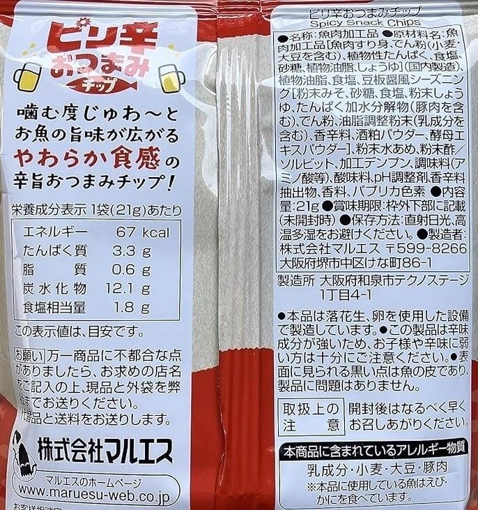 噛む度じゅわ~とお魚の旨味が広がるやわらか食感の辛旨おつまみチップ!