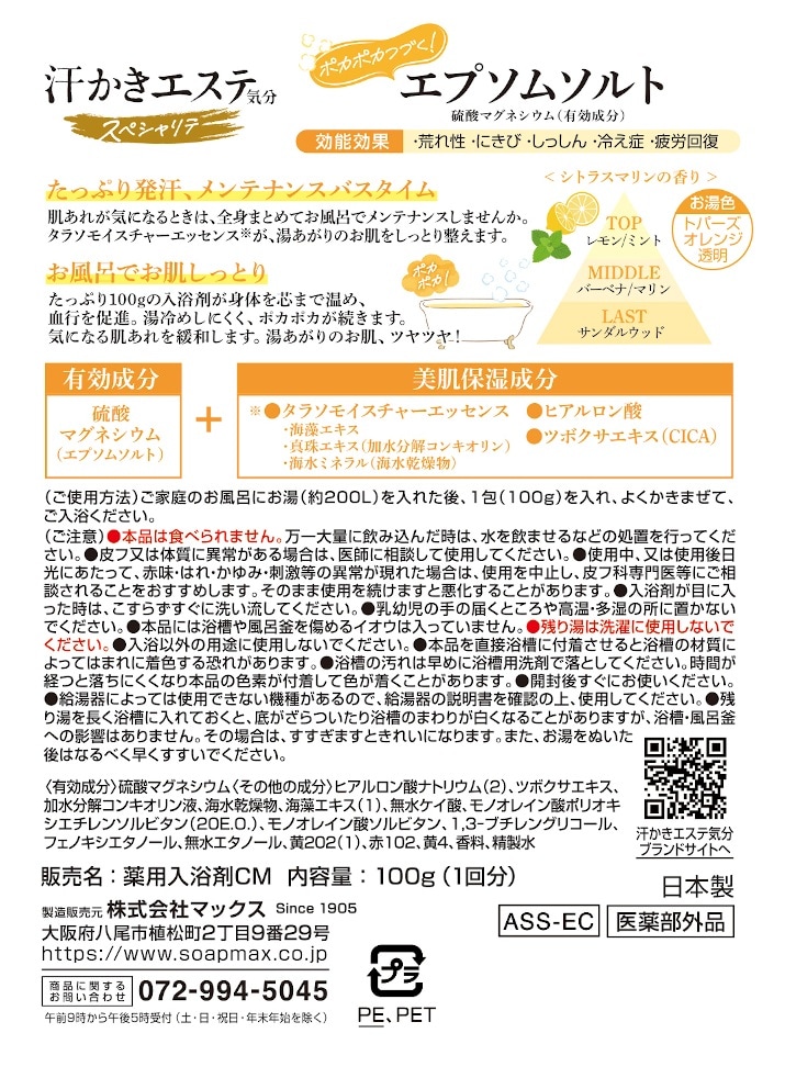 【汗かきエステ気分S エプソムソルト シトラスマリンの香り】