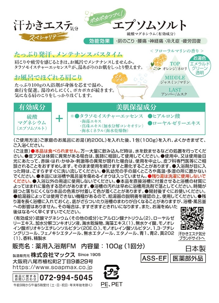 【汗かきエステ気分S エプソムソルト フローラルマリンの香り】