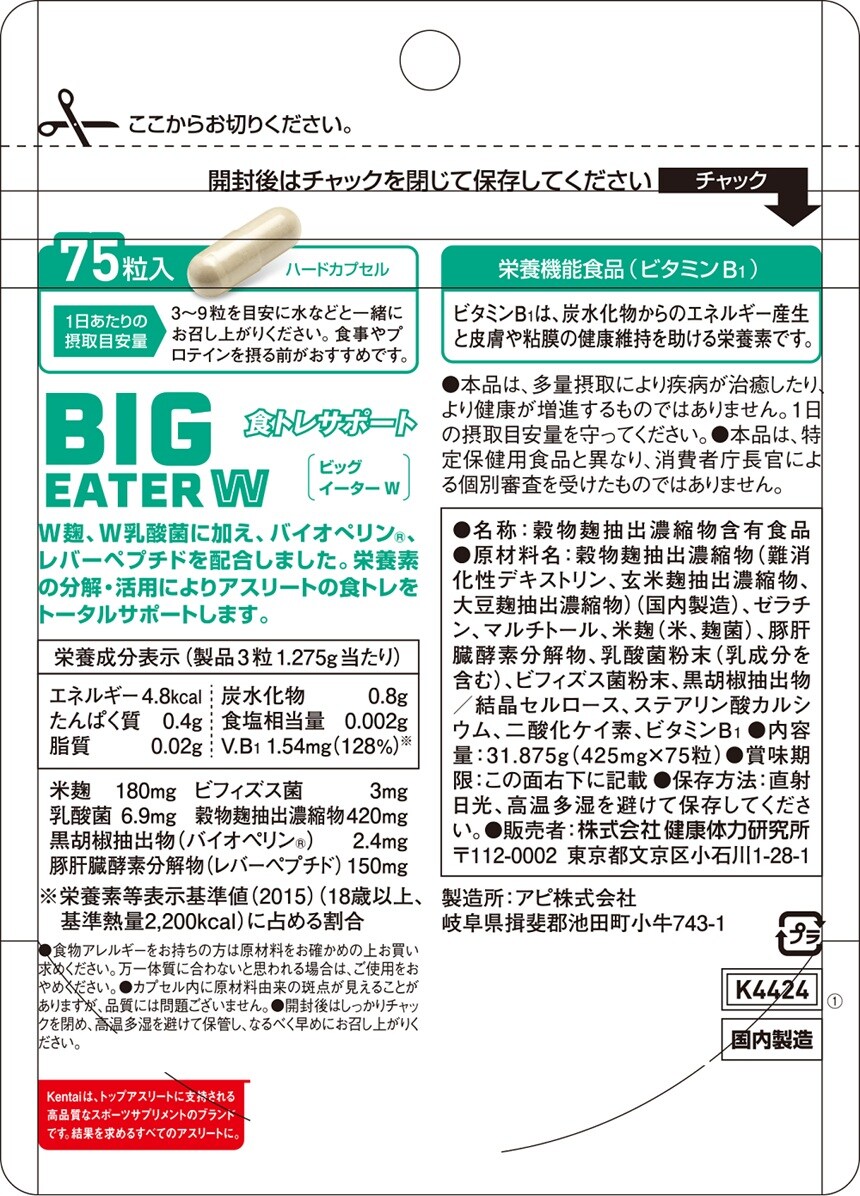 [12個]健康体力研究所 ビッグイーターW 31.875g(75粒) | 分解・菌活・運搬・活用の4つの働きで食トレをトータルサポート