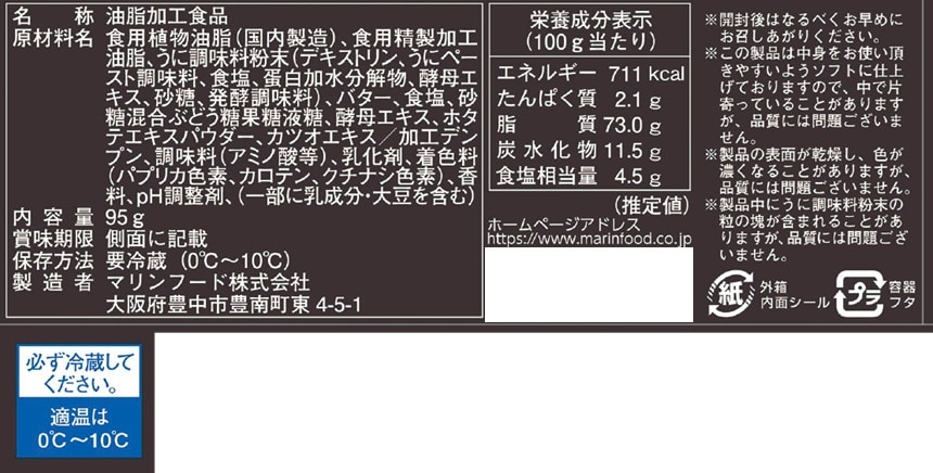 [12個]マリンフード うにバターブレンド 95g | コクのあるバターとうにの旨味が調和