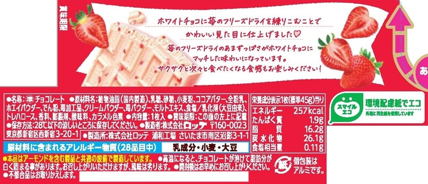 苺のフリーズドライのあまずっぱさがホワイトチョコにマッチした味わいになっています!