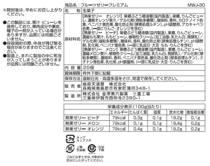 - フルーツゼリープレミアム MWJ-30 52g×20個