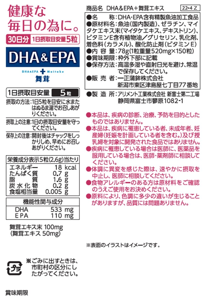 [4個]【機能性表示食品】一正蒲鉾 DHA&EPA+舞茸エキス 30日分(150粒入) | 青魚のサラサラ成分で手軽に対策!「記憶力の維持」と「中性脂肪を下げる」サプリメント