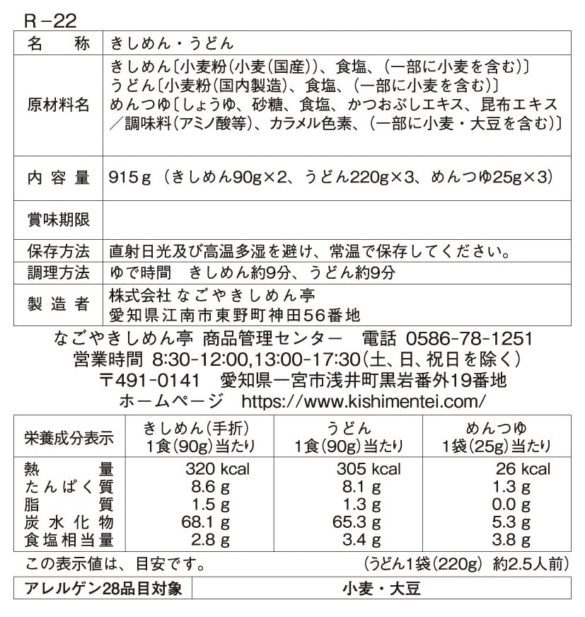 [2箱]なごやきしめん亭 ふるさと麺詰合せ R-22 | 乾麺のきしめん・うどん詰合せです。