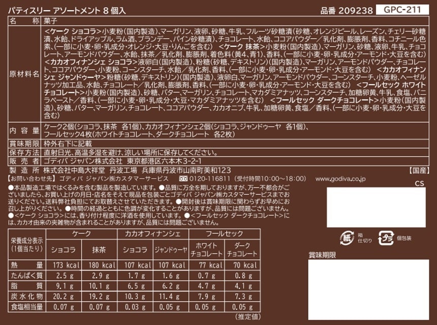 [4箱]ゴディバジャパン パティスリー アソートメント 8個入 | ベルギー産チョコレートを使用
