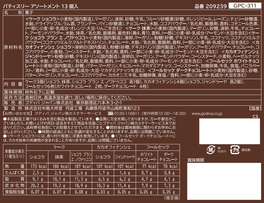 [4箱]ゴディバジャパン パティスリー アソートメント 13個入 | ベルギー産チョコレートを使用