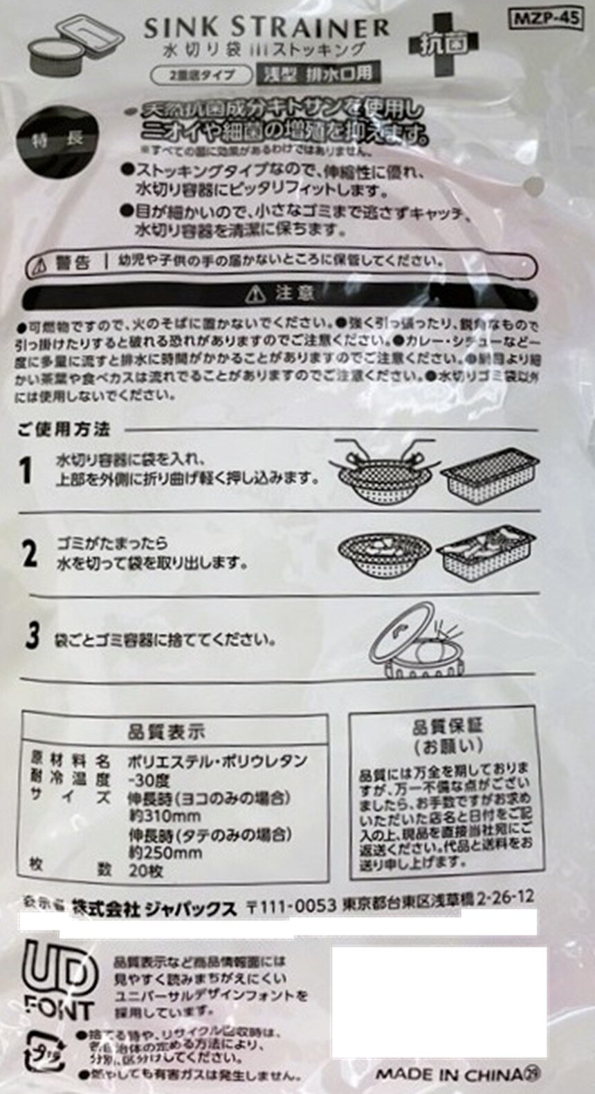 - MZP45 水切り袋ストッキング 浅型2重底 抗菌 20枚入