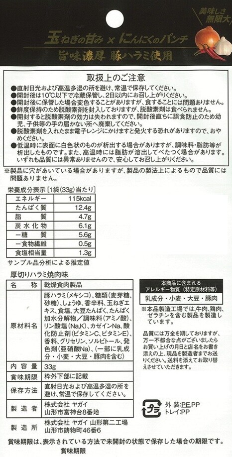 [20袋]ヤガイ 厚切りハラミ焼肉味 33g | 馴染みのある焼肉だれ味に仕上げました。