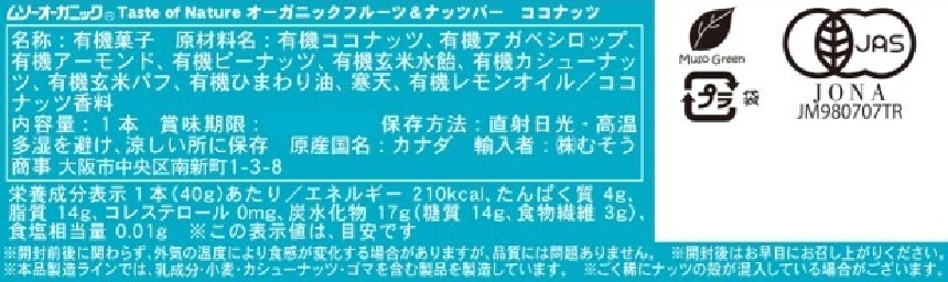 - JAS有機 フルーツ&ナッツバー ココナッツ