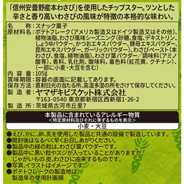 [24個]ヤマザキビスケット チップスターL 安曇野本わさび味 105g | 清涼感を加えたツンとした辛さと、旨みが特徴の後引くこだわりの一品に仕上げました。