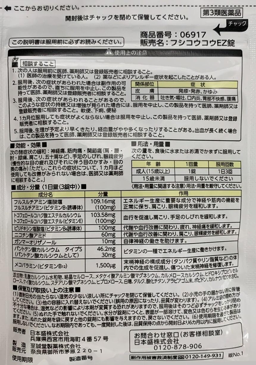 [8個]【第3類医薬品】日本盛 フシコウコウEZ錠 90錠(30日分) | ひざ・腰・肩などの関節痛・神経痛、手足のしびれ、眼精疲労に
