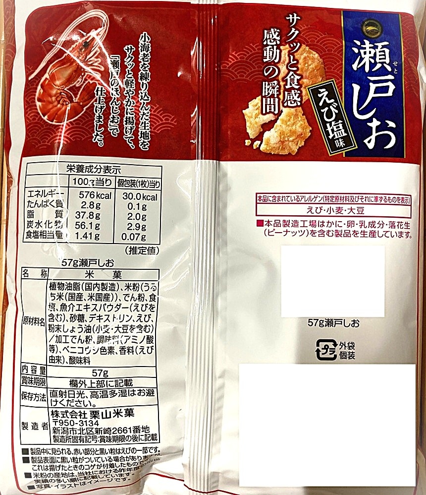 [16個]栗山米菓 瀬戸しお 57g | サクッと軽やか食感の海老揚げせん