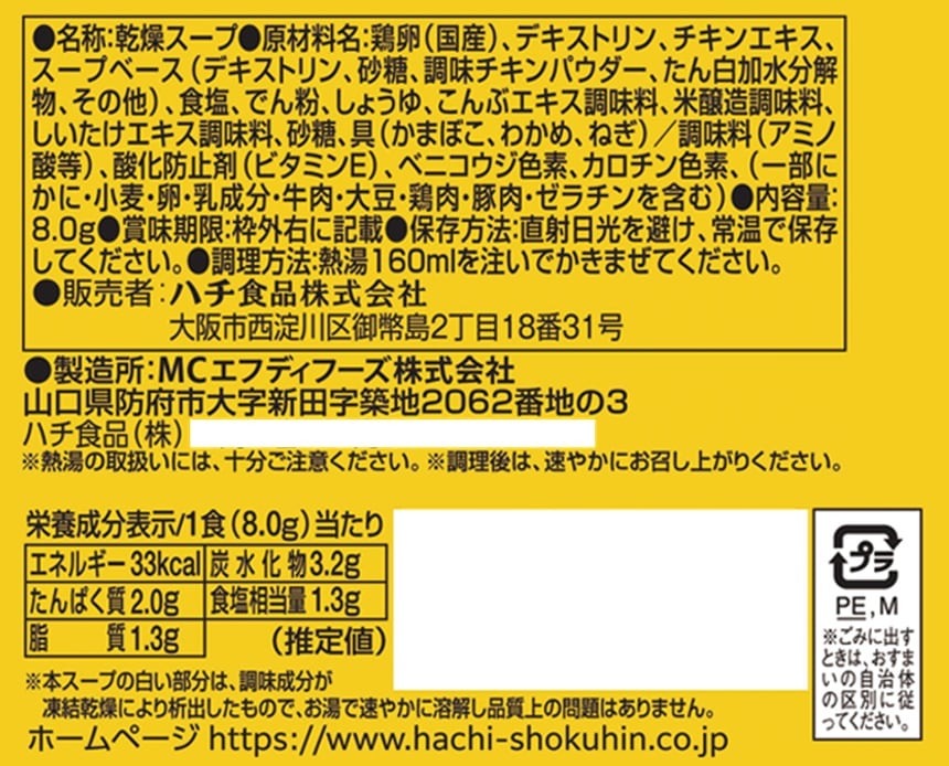 [50食]ハチ食品 本格派 たまごスープ RS-50K 8g | ふんわりなめらかなたまごを鶏がらとこんぶの合わせだしで仕上げたスープ