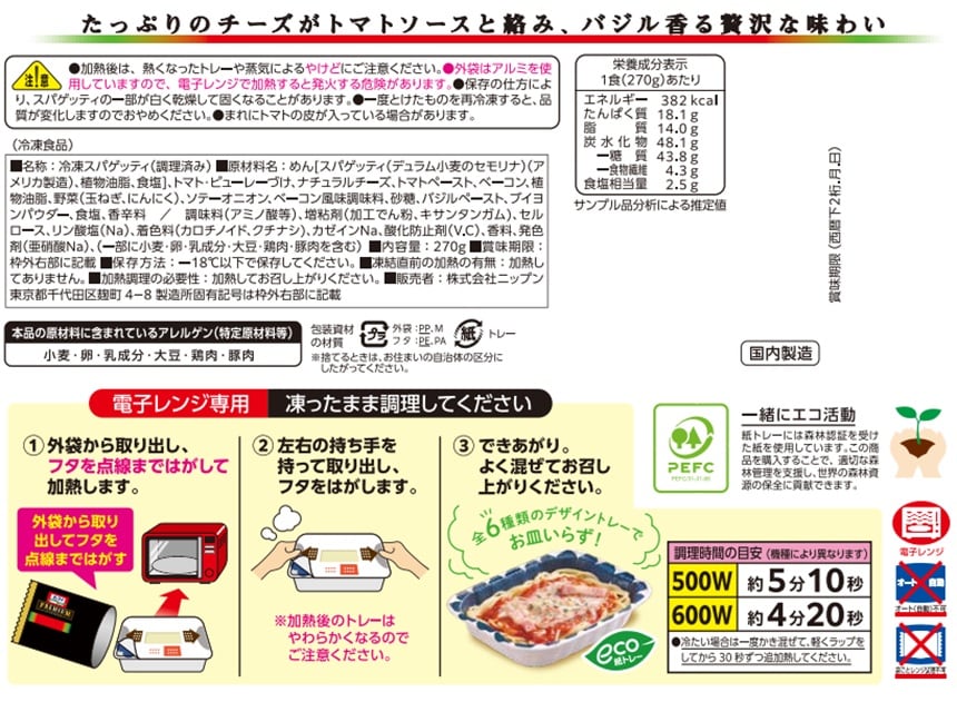 旨みのあるトマトソースとたっぷりのとろけたナチュラルチーズが絡みあう贅沢な味わい。