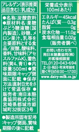 [24本]南日本酪農協同 スコール メロンクリームソーダ 500ml | スコールの微炭酸とクリーミーな味わいが特徴の昔懐かしいメロンクリームソーダ