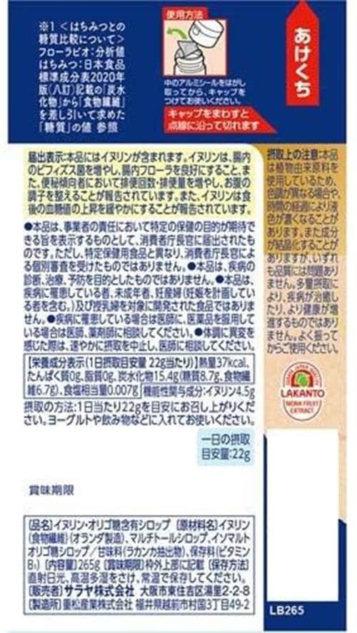 [6本]【機能性表示食品】サラヤ ラカント フローラビオ 265g | Wの機能でおなか整う!