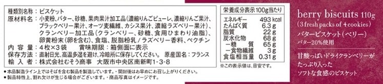 甘酸っぱいドライクランベリーがたっぷり入ったソフトな食感のフランス産バタービスケット