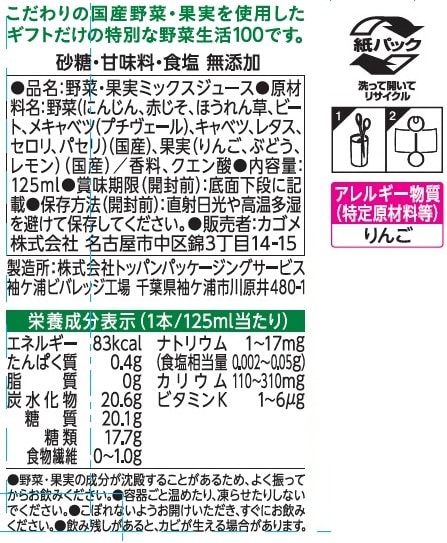 [2種計60本]カゴメ 野菜生活100 国産プレミアム 巨峰ミックス 125ml / デコポンミックス 125ml | こだわりの国産野菜・果実を使用したギフトだけの特別な野菜生活100です。