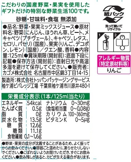 [60本]カゴメ 野菜生活100 国産プレミアム デコポンミックス 125ml | こだわりの国産野菜・果実を使用したギフトだけの特別な野菜生活100です。
