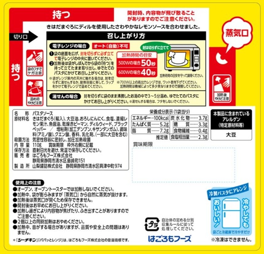 [15個]はごろもフーズ パパッとレンジ シーチキン レモンソース 110g | きはだまぐろに、ディルを使用したさわやかなレモンソース。