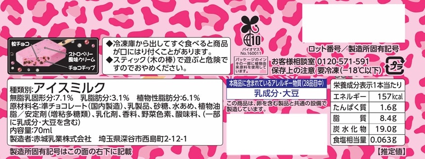※アイスクリーム類は、-18度以下での冷凍保存の状態では、品質の劣化が極めて小さい食品ということで、賞味期限の設定がされておりません。