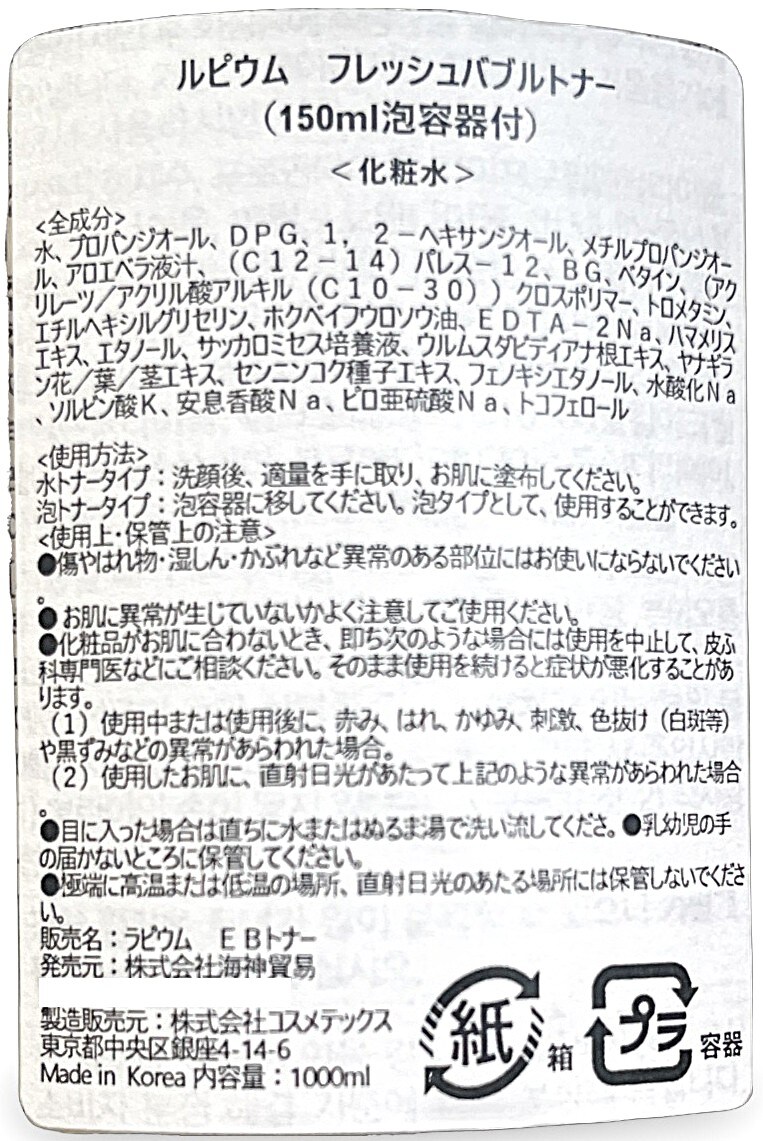 - ルピウム フレッシュバブルトナー(ポンプ、150ml泡容器付き) 1000ml
