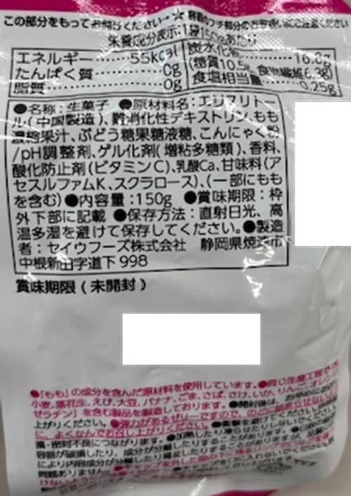 【毎日ゼリー 蒟蒻 ピーチ味】