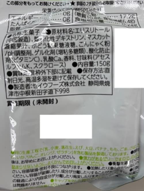 ・毎日ゼリー 蒟蒻 マスカット味 150g×24個 - 賞味期限