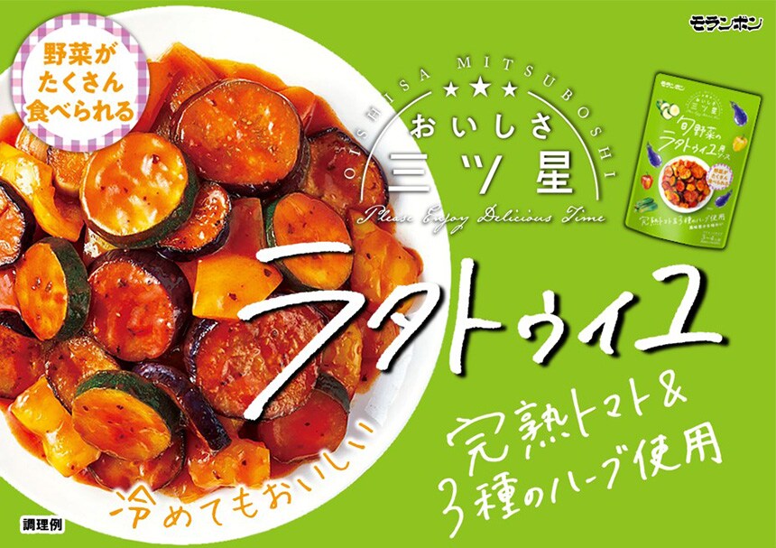 [40袋]モランボン おいしさ三ツ星 旬野菜のラタトゥイユ用ソース 180g | 完熟トマトに炒め玉ねぎと香味野菜を加え、ガーリックとハーブを効かせた濃厚で風味豊かなラタトゥイユ用ソース。