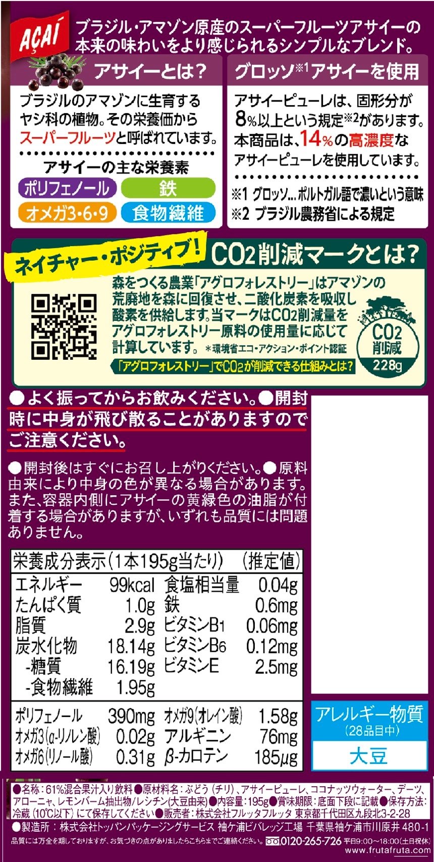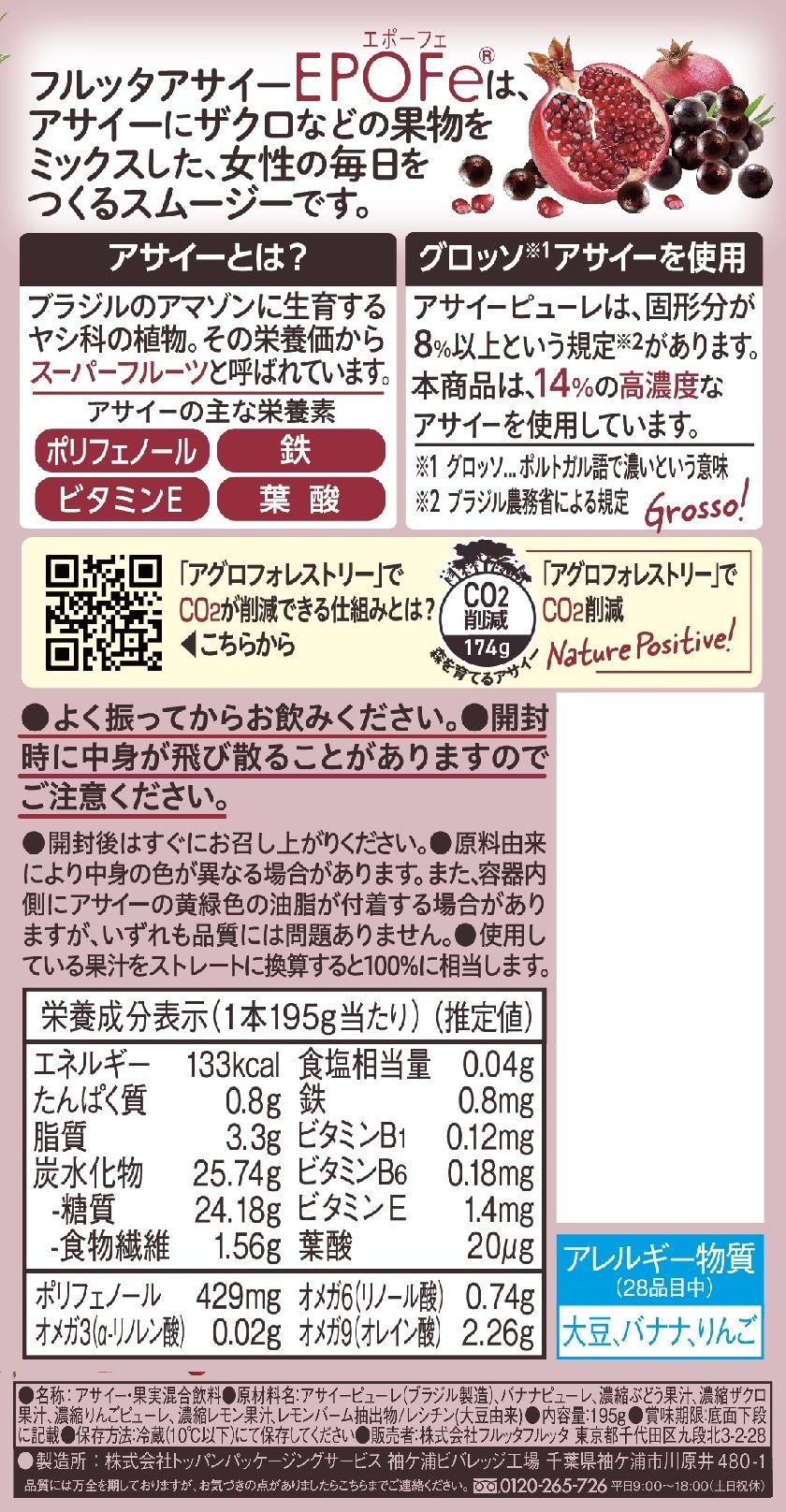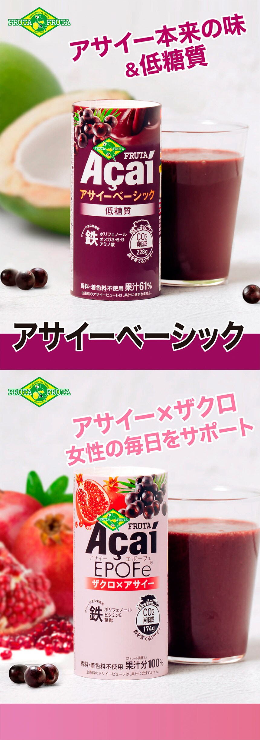 [2種計60本]フルッタフルッタ アサイー ベーシック低糖質 195g / エポーフェ 195g | アサイー本来の味が楽しめる、アサイードリンク2種セット