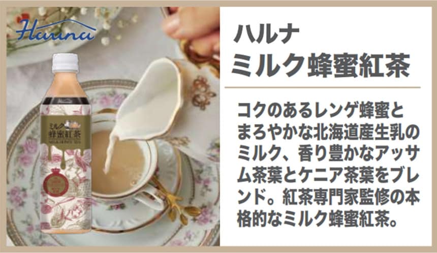 [24本]ハルナプロデュース ミルク蜂蜜紅茶 500ml | コクのあるレンゲはちみつと北海道産生乳のミルク、香り豊かなアッサム茶葉とケニア紅茶をミックスしたミルク蜂蜜紅茶です。
