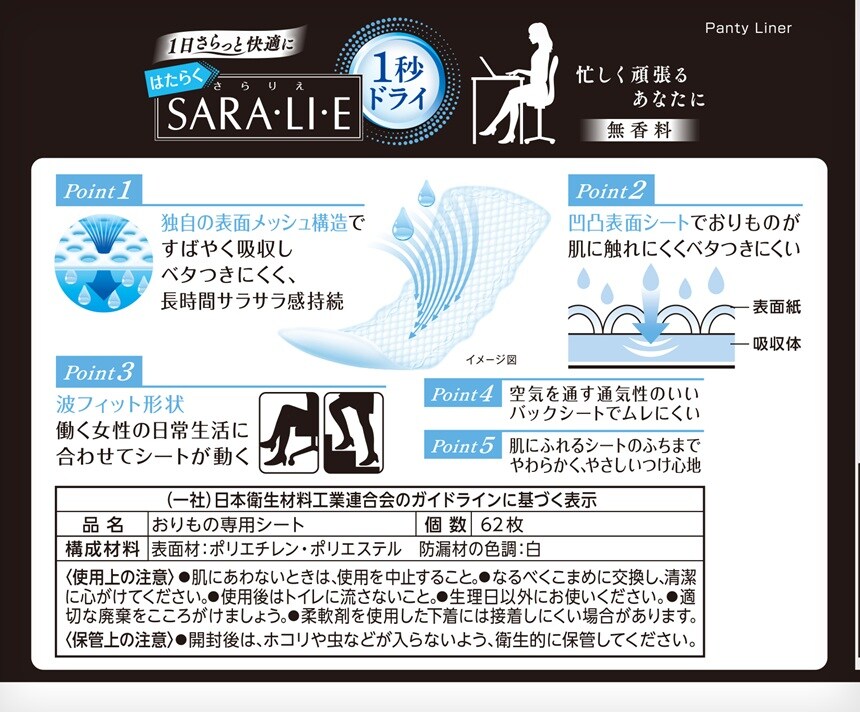 - サラサーティ はたらくSARA・LI・E 1秒ドライ 62枚入